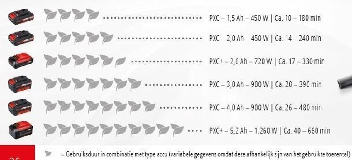 - Accu kan worden gebruikt in andere PXC machines