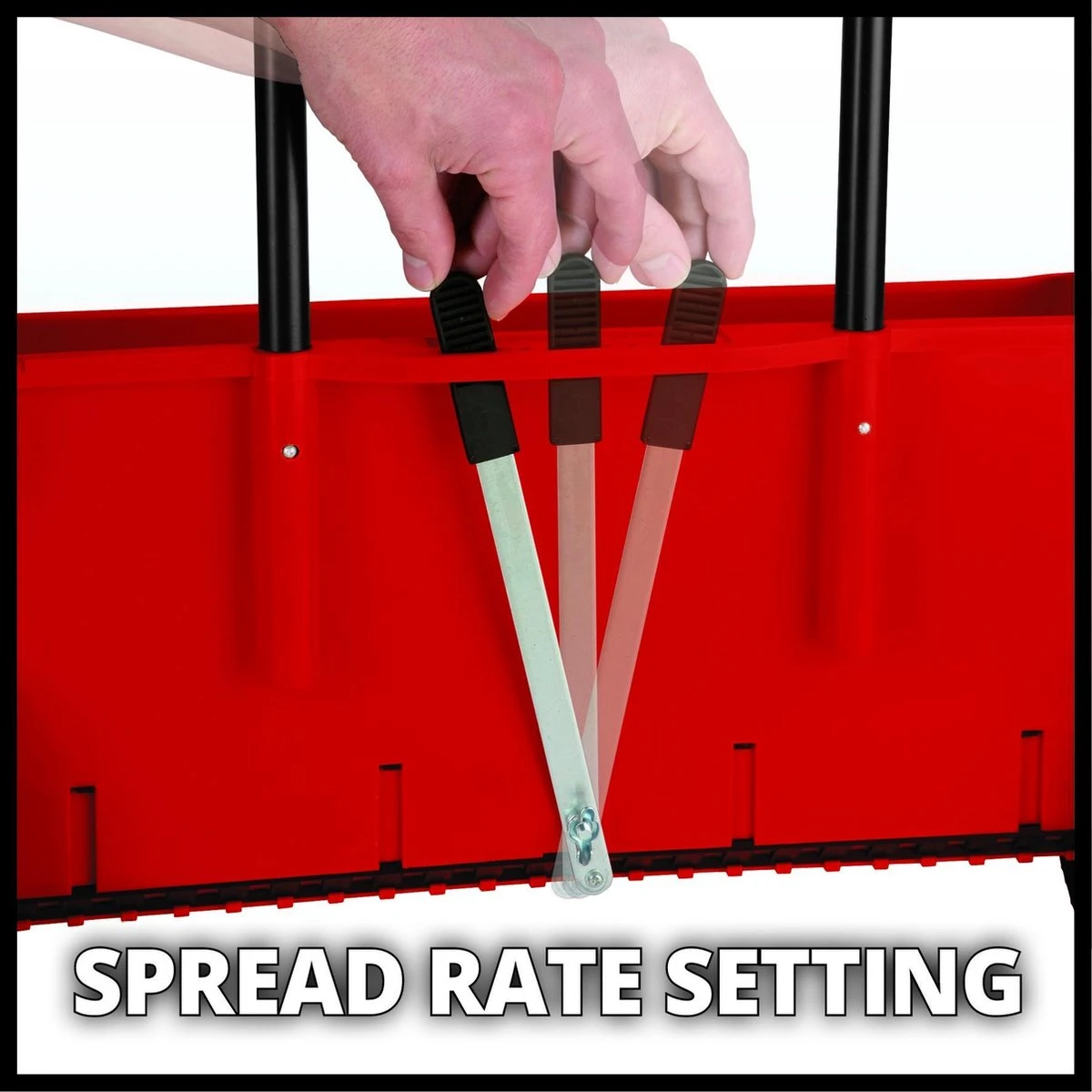 - Afstelhendel voor het regelen van de verdeelsnelheid