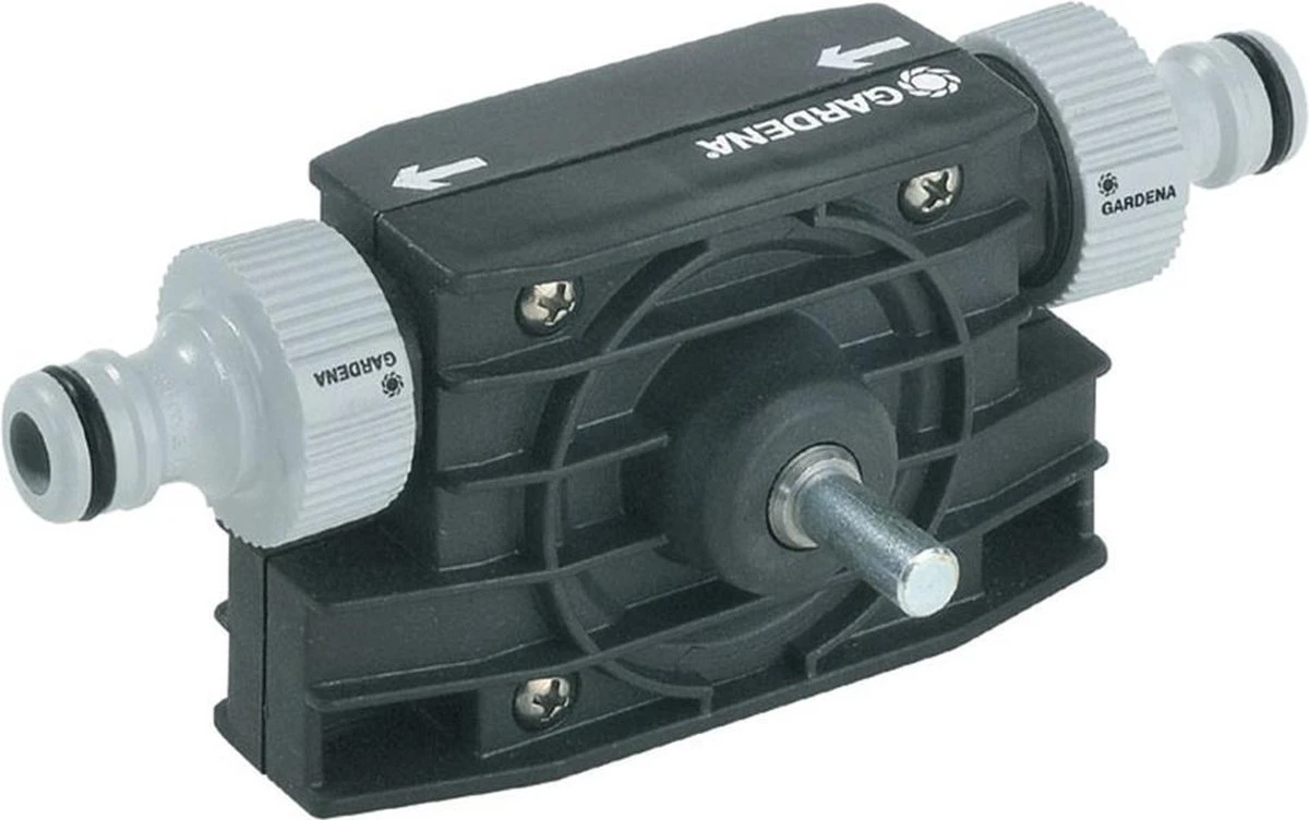 Simpel op de voorzetpomp te monteren. De aandrijfas past op de kop van elke standaard elektrische boor (Ø 8 mm). Met de Original GARDENA aansluitstukken is de pomp meteen klaar voor gebruik.