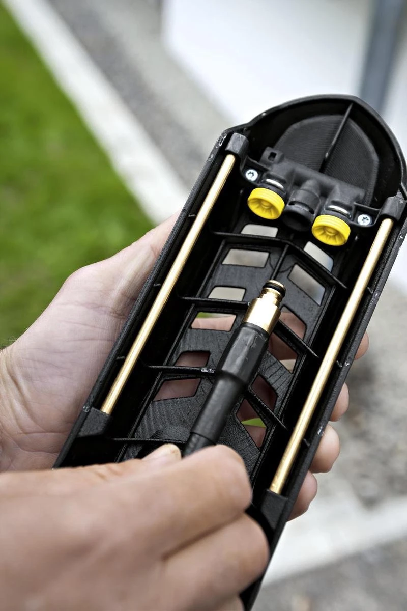 Met deze set reinig je grondig, snel en eenvoudig afvoeren en dakgoten. Ideaal voor het bladvrij maken van de dakgoot in de herfst. De dakgoot- en rioolreinigingsset werkt volledig zelfstandig – met hogedruk. De lengte van de slang is 20 meter.