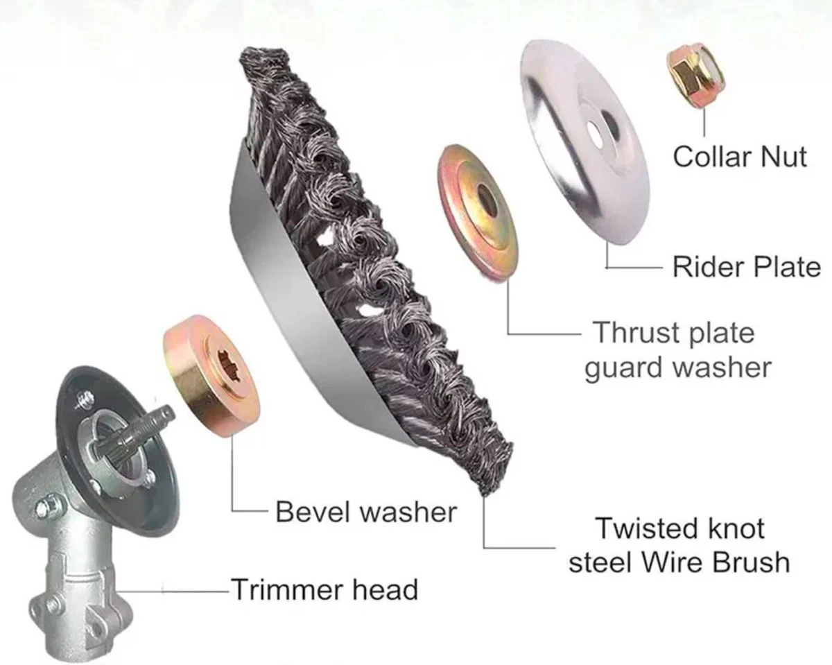 De onkruidborstels hebben een asgat van 25,4mm en een diameter van 200 mm / 8″ inch en zijn vrijwel op alle bosmaaiers / kantenmaaiers / strimmers te monteren.