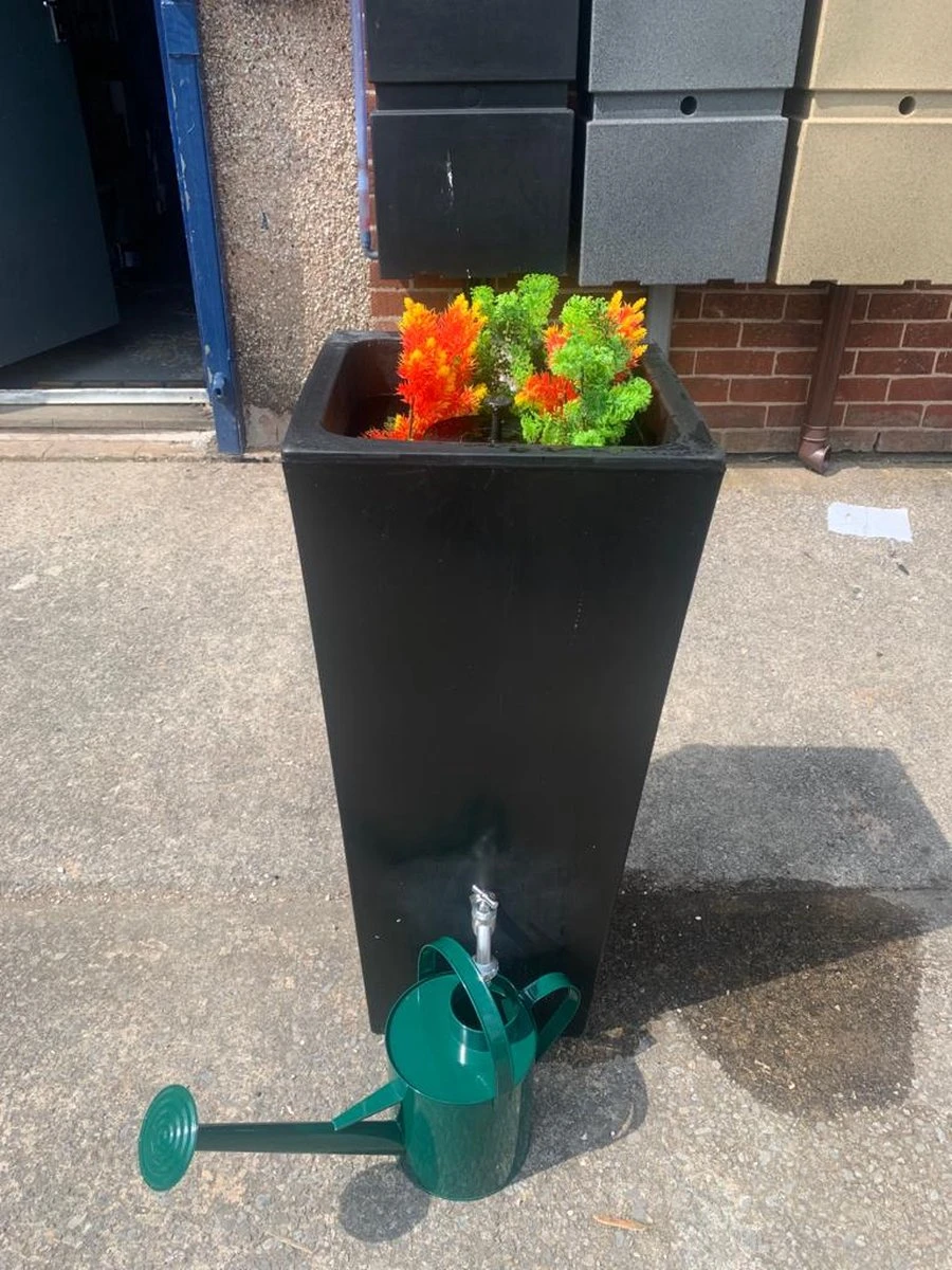 Deze chique regenton plantenbak is een elegante toevoeging aan elke tuin. De Manhattan is een twee-in-een plantenbak en regenton, waardoor het bovenste deel kan worden geplant terwijl het onderste deel regenwater opvangt. Overtollig water uit de planter kan ook weglopen naar de tank, waardoor er geen water verloren gaat. Door de plantenbak eenvoudig 90 graden te draaien, kan het display zonder kraan worden bediend, waardoor de illusie van een plantenbak ontstaat, terwijl het water vanaf de zijkant of achterkant toegankelijk is.
