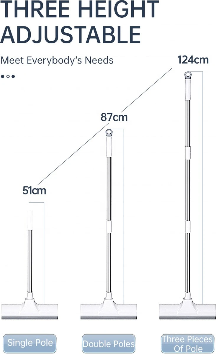 De bezem is geschikt voor meerdere klussen. Aan de zijde van de Schrob bezem zit een ramenwisser. Hiermee kun je de vloer droog maken of zelfs de ramen lappen. Dankzij de lange steel van de bezem is deze dus ideaal voor het lappen van de wat hogere ramen.