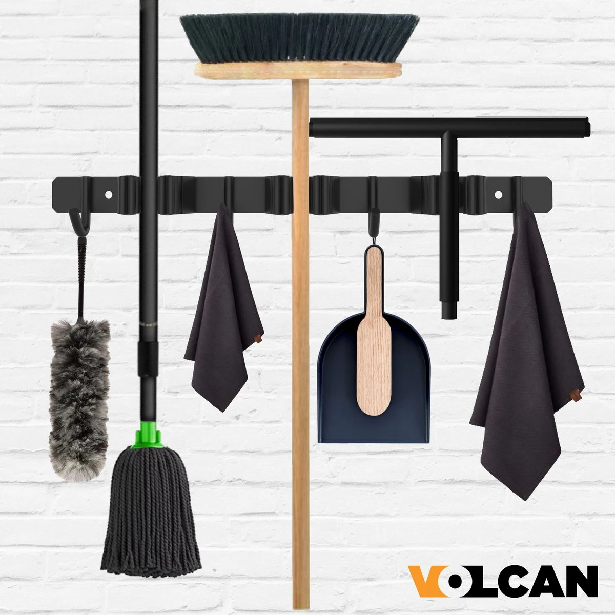 Erger je niet langer aan omvallende bezems en losliggend tuingereedschap. Met deze Volcan bezemhouder is jouw schuur of bezemkast in een handomdraai netjes opgeruimd. Gemaakt van sterk RVS met een zwarte poedercoating heeft vocht geen schijn van kans. De sterke klemmen uitgevoerd met rubberen wieltjes houden iedere bezemsteel stevig op plek.